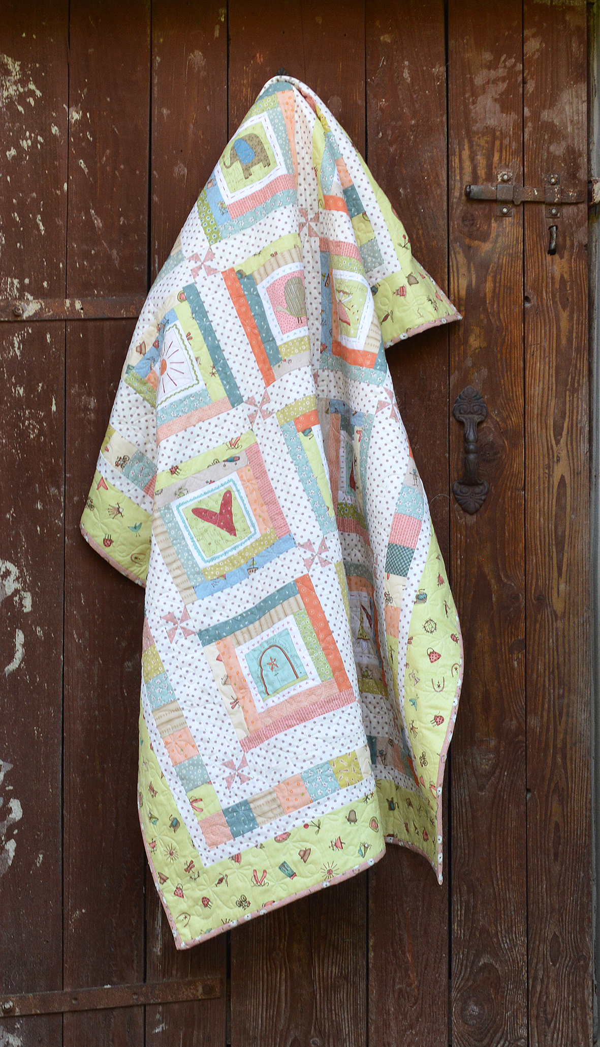 Veselá dětská deka z panelů a látek návrhářky A. Downs.