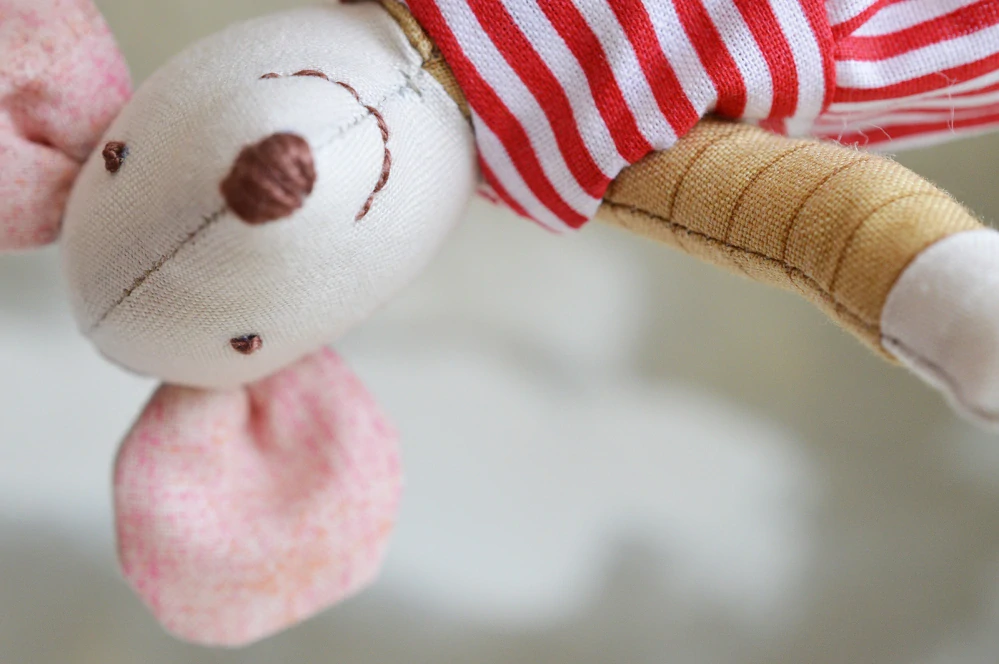 Holka vyrostla do výšky cca 14 cm. Její výplň tvoří duté vlákno (vhodné i pro alergiky). Detaily obličeje jsou vyšité.